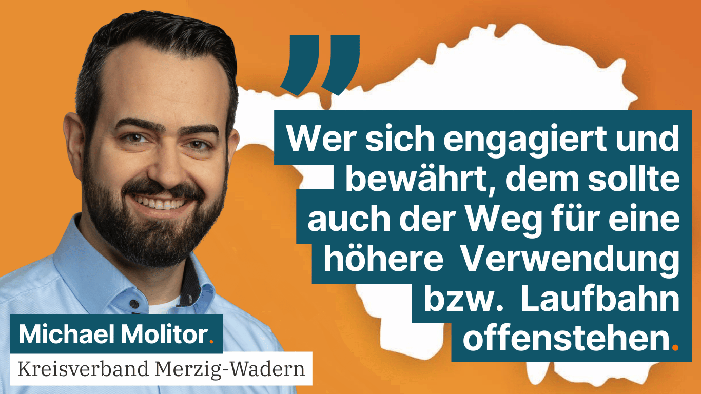 Was die Weiterentwicklungsmöglichkeiten anbelangt, so hat der öffentliche Dienst klar Nachholbedarf. Oftmals ist es motivierten Mitarbeiterinnen und Mitarbeiter nicht möglich, in eine höhere Laufbahn aufzusteigen. Wir machen uns daher dafür stark, den Rechtsrahmen anzupassen und bei Stellenausschreibungen künftig zu berücksichtigen, ob auch interne Mitarbeiterinnen und Mitarbeiter aus der nächsttieferen Laufbahngruppe dafür ausgewählt und   ihnen   der   Laufbahnaufstieg   ermöglicht   werden   kann   mittels   berufsbegleitender Weiterqualifizierung. „Wer sich engagiert und bewährt, dem sollte auch der Weg für eine höhere   Verwendung   bzw.   Laufbahn   offenstehen“,   fordert   Molitor.   Auch   stehen   viele Mitarbeiterinnen und Mitarbeiter auf Grund der teilweise angespannten Personalsituation vor   einer   Überlastung.   „Gerade   im   Pflegebereich   brauchen   wir   daher   noch   stärkere Personaluntergrenzen“, so Molitor.