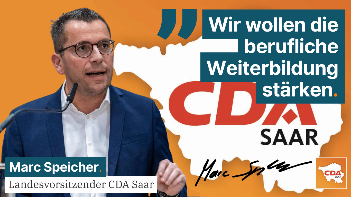Die Christlich-Demokratische Arbeitnehmerschaft (CDA) Saar, als Teil der CDU Saar, bekennt sich zur Förderung von lebenslangem Lernen und zur Stärkung der Beschäftigungsfähigkeit. Umso mehr nimmt die CDA Saar mit Wohlwollen zur Kenntnis, dass der Bundesvorstand der CDU mit seinem Antrag zum 36. Parteitag am 6. bis 8. Mai 2024 einen Fokus auf ebendieses Thema legt und dem Parteitag der CDU Deutschlands zum Beschluss vorlegt.