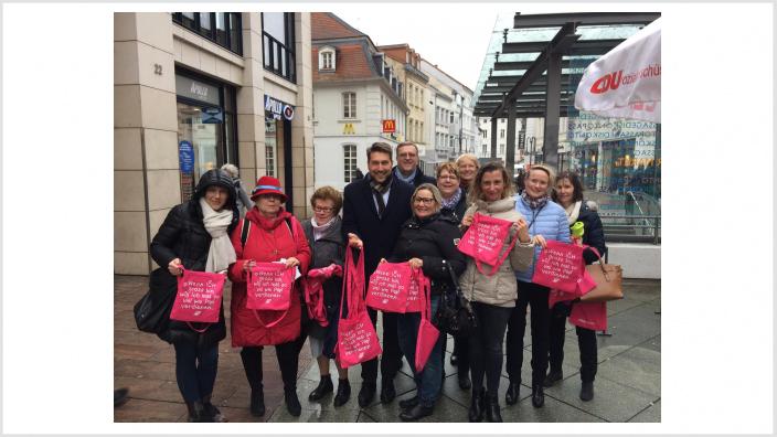 23.03.2019 Gleicher Lohn für gleiche Arbeit - Frauen zeigen Flagge Im Vorfeld zum Equal-Pay-Day haben Frauen der CDA in der Saarbrücker Fußgängerzone Taschen verteilt und so ein Zeichen für gleichen Lohn für...
